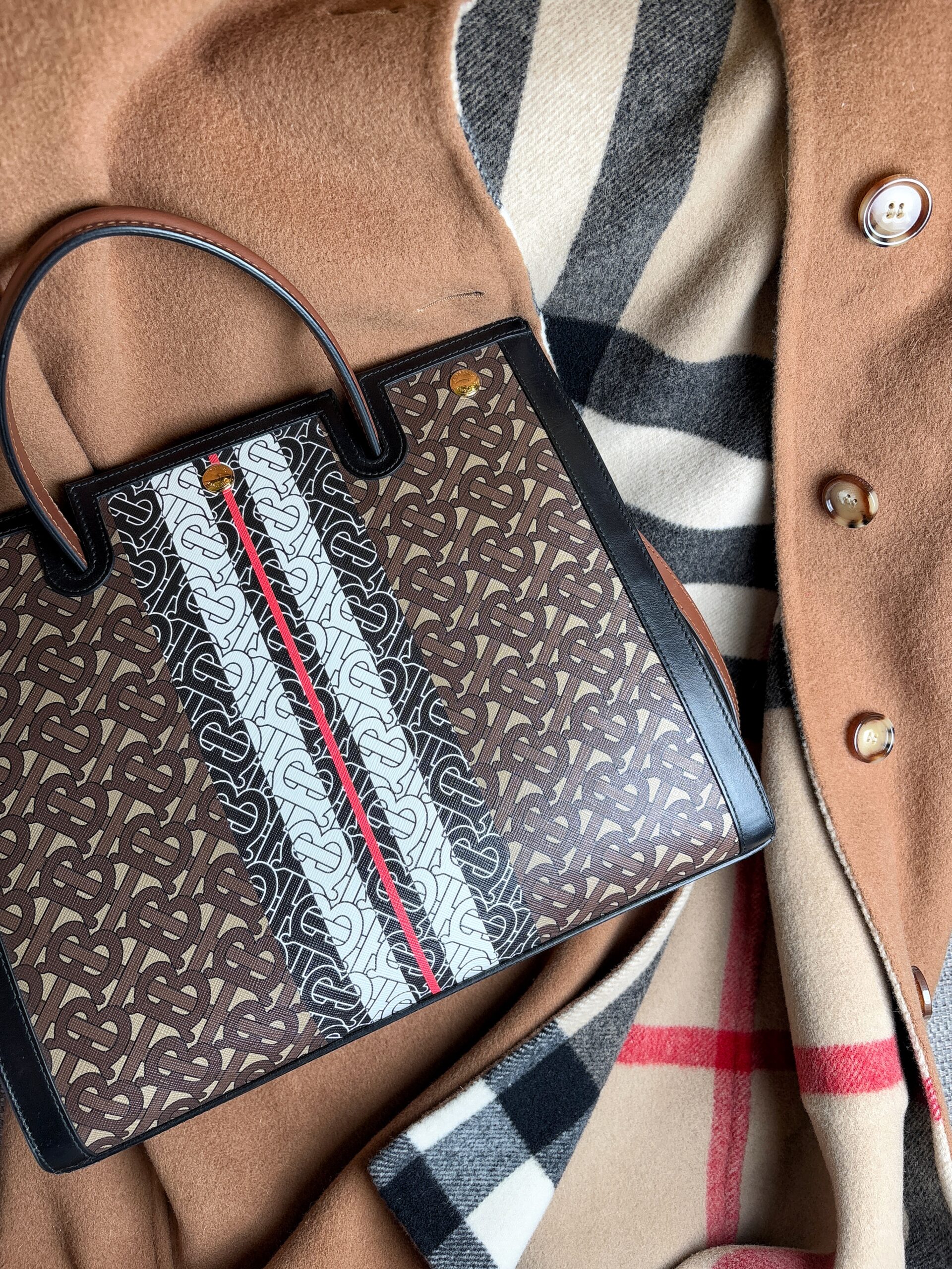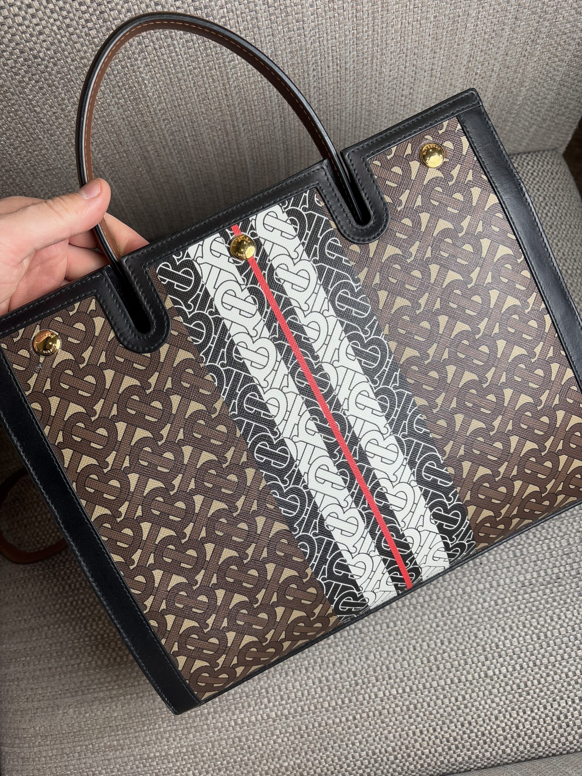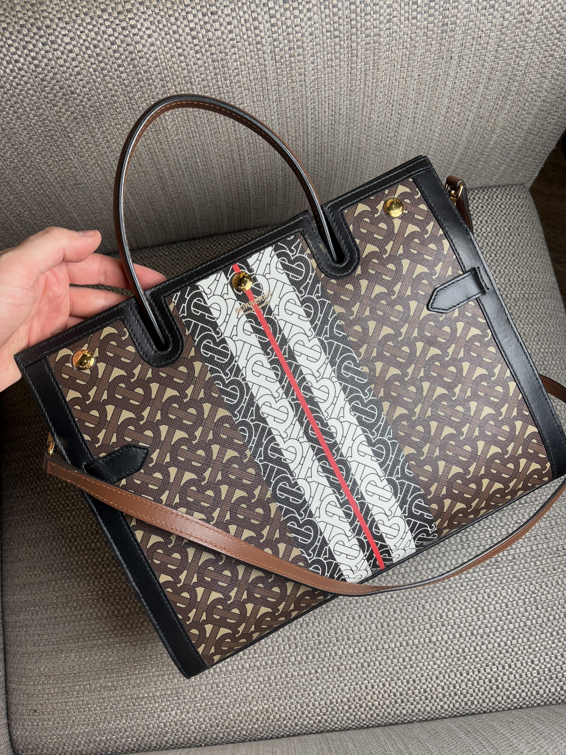 BURBERRY Medium Monogram Stripe E-Canvas Title Bag