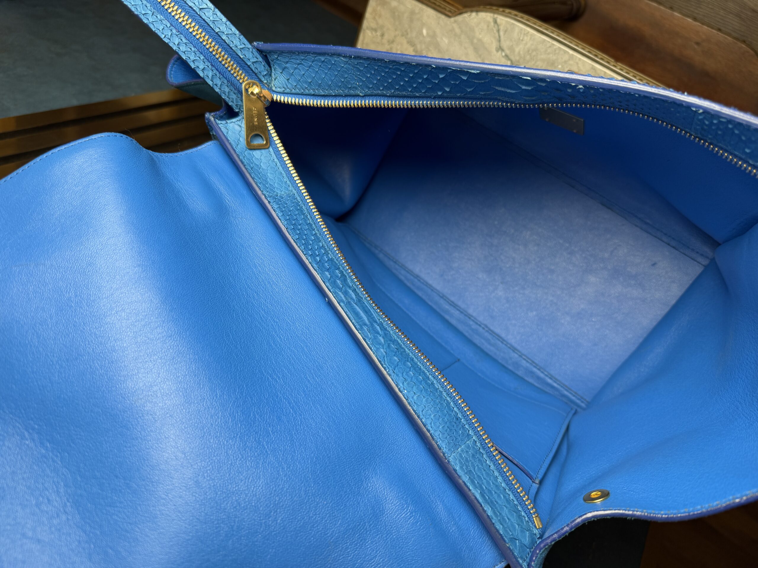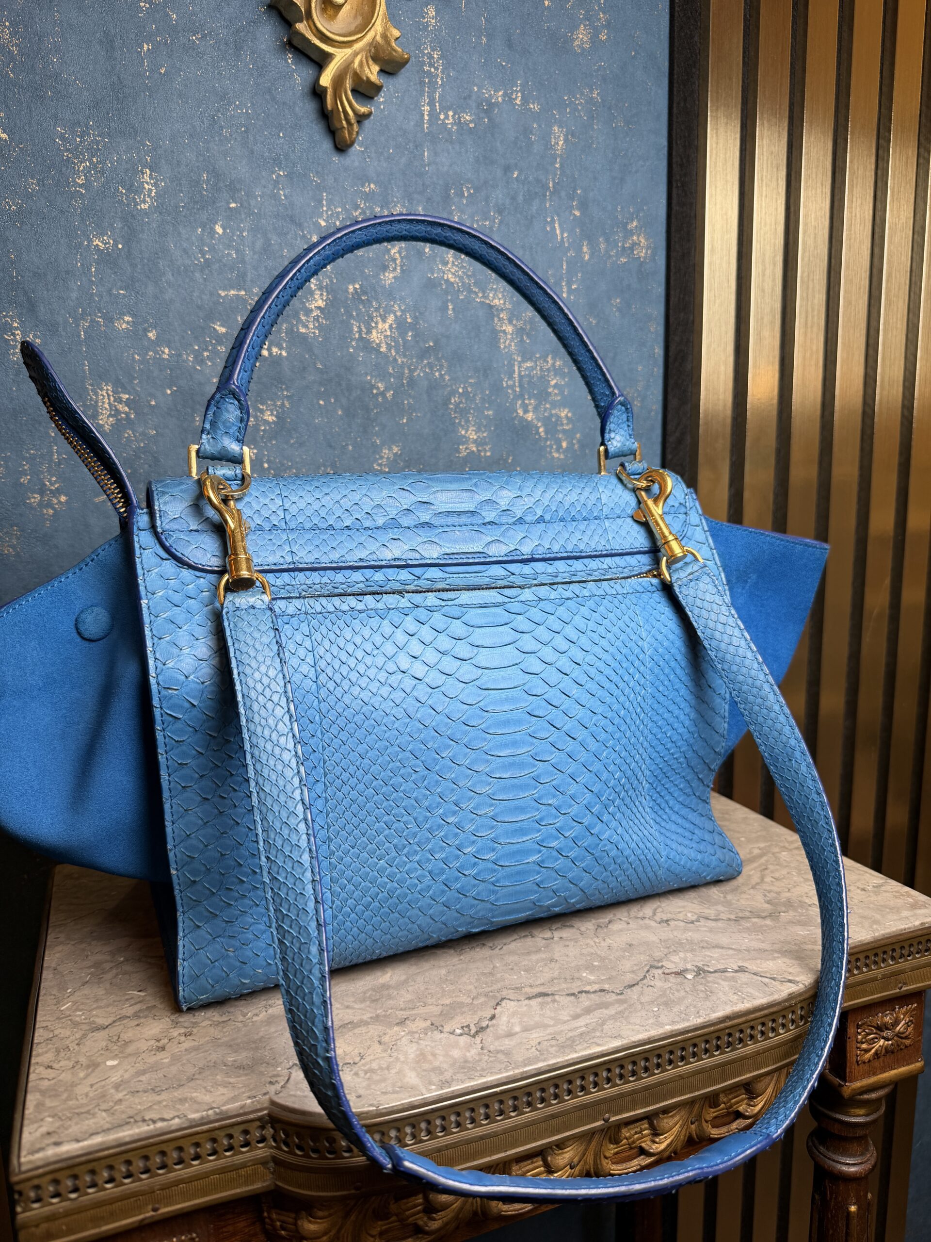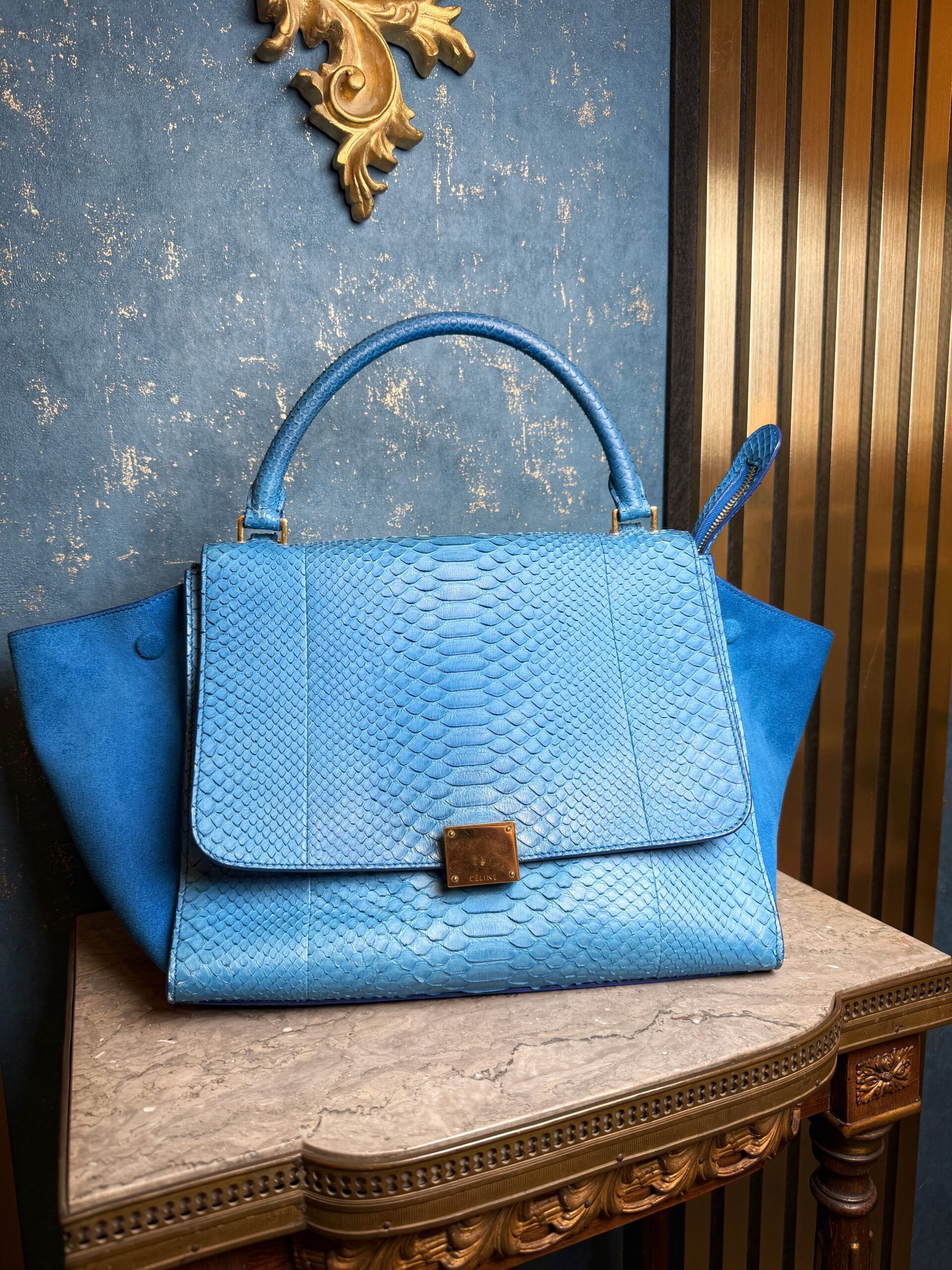 Celine Trapeze Bag Blue Python and Suede Leather
