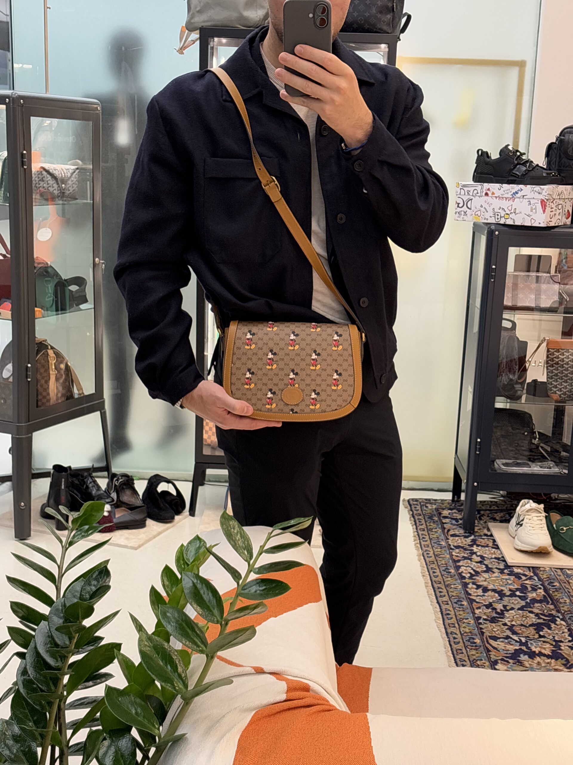 Gucci Messenger v kolaboraci s Disney (Mickey Mousse), vhodný na denní nošení. Je úplně nový, s boxem a dustbagem.