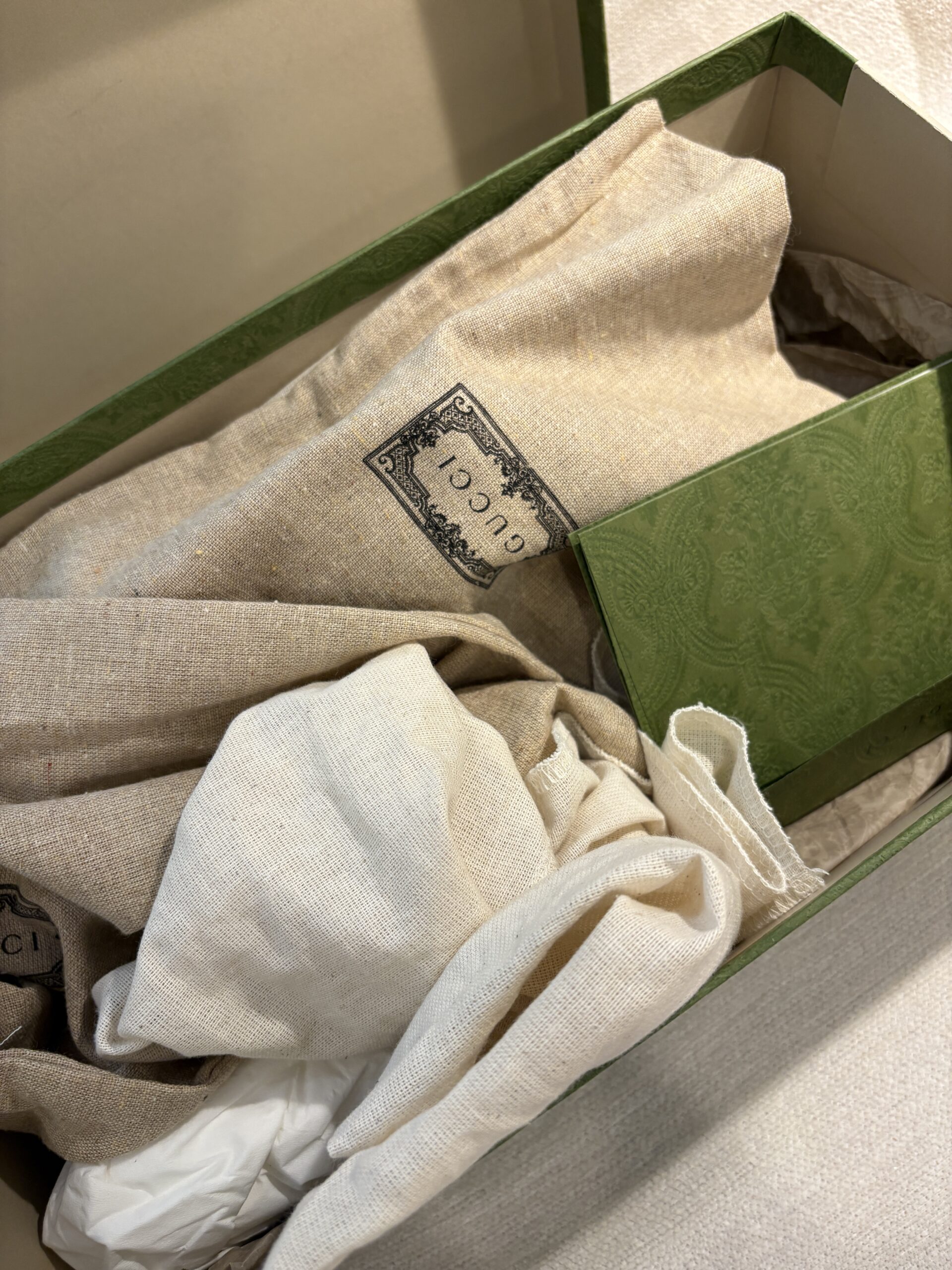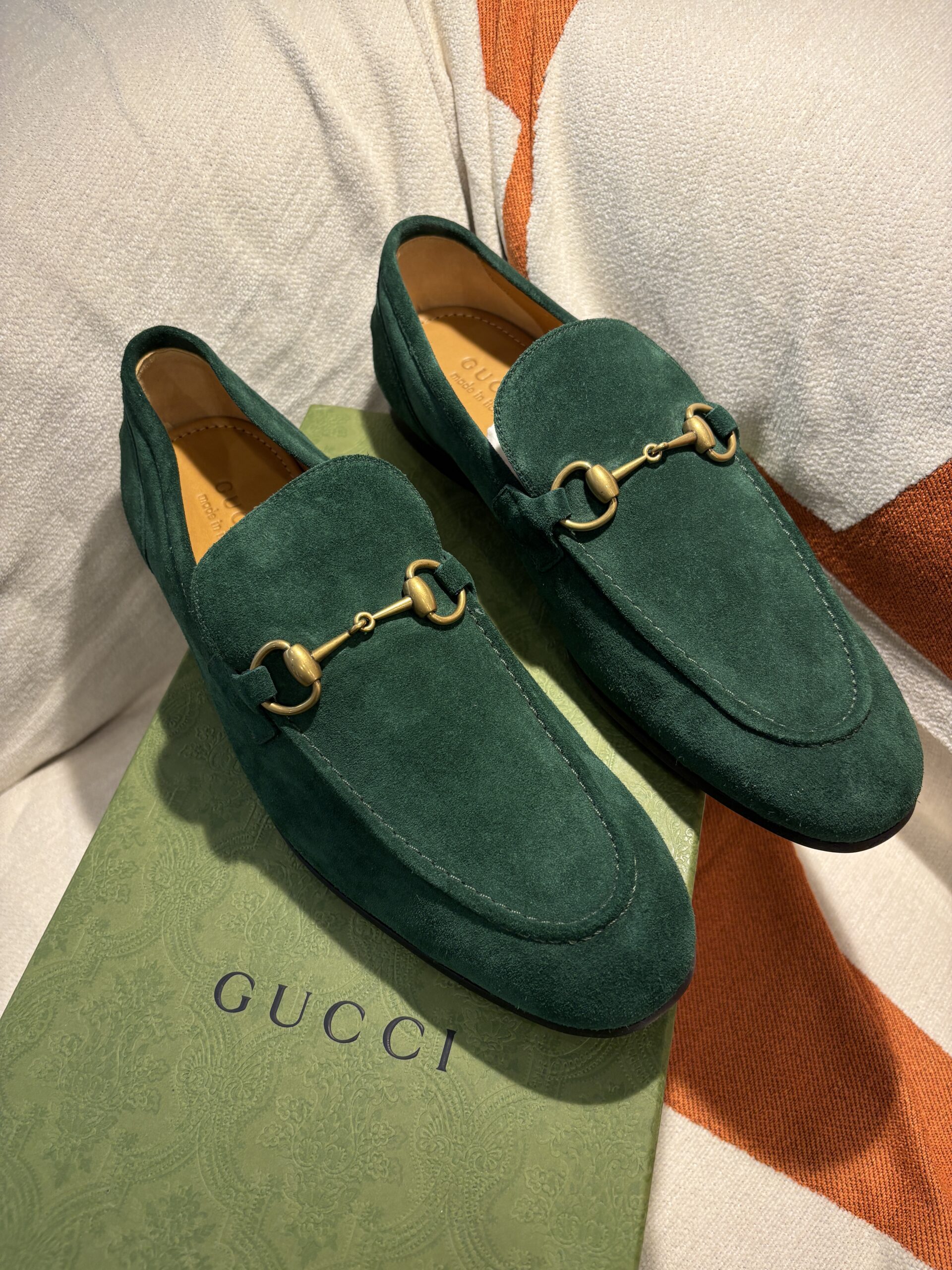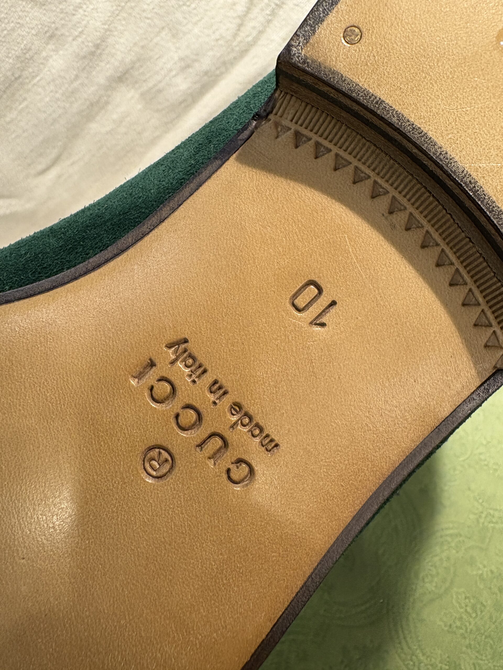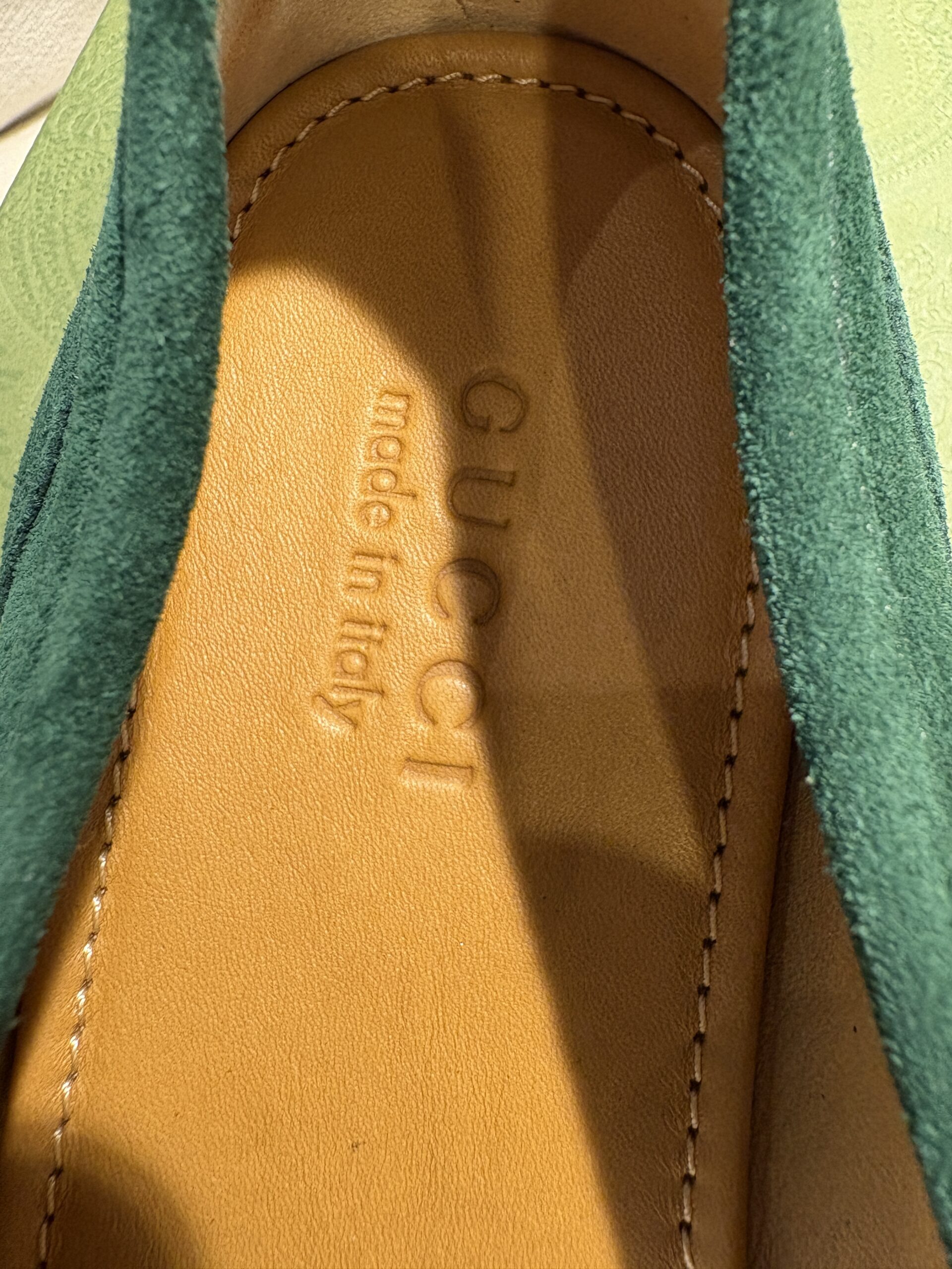 Gucci mokasíny v krásné malachitové barvě, velikost 10. Jsou úplně nové a s kompletním balením. Cena zde poloviční oproti pořizovací (23900Kč)