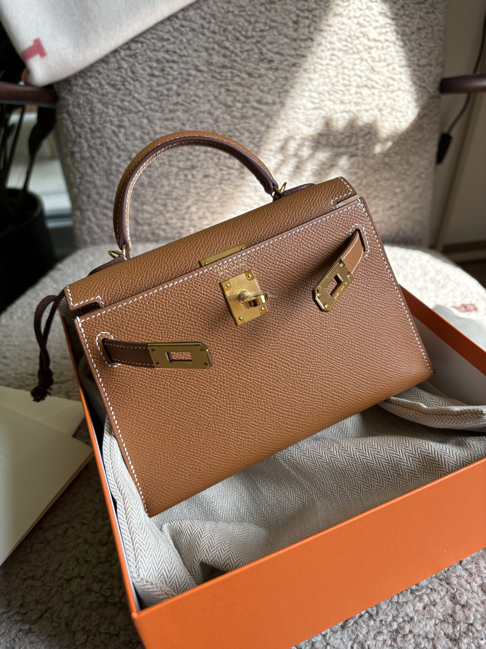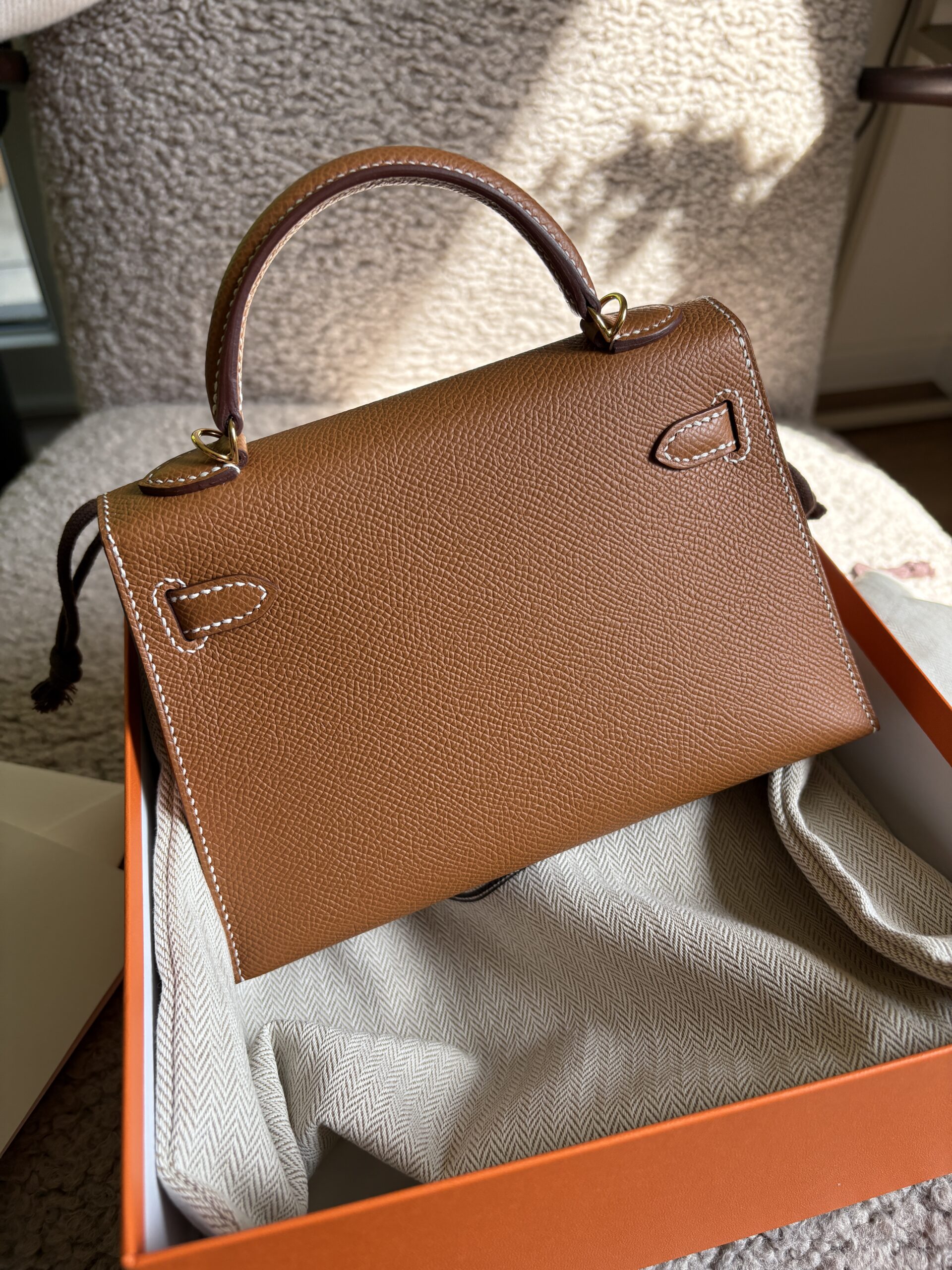 Královna všech královen – naprosto unikátní Kelly Mini, kterou lze v butiku i po předchozí historii nákupu zakoupit jen stěží a ještě ve variantě gold on gold. Je taková kabelka Vaším splněným přáním? Nebojte se na nás obrátit, tuto krásku jsme sehnali rámci objednávky „na přání“.