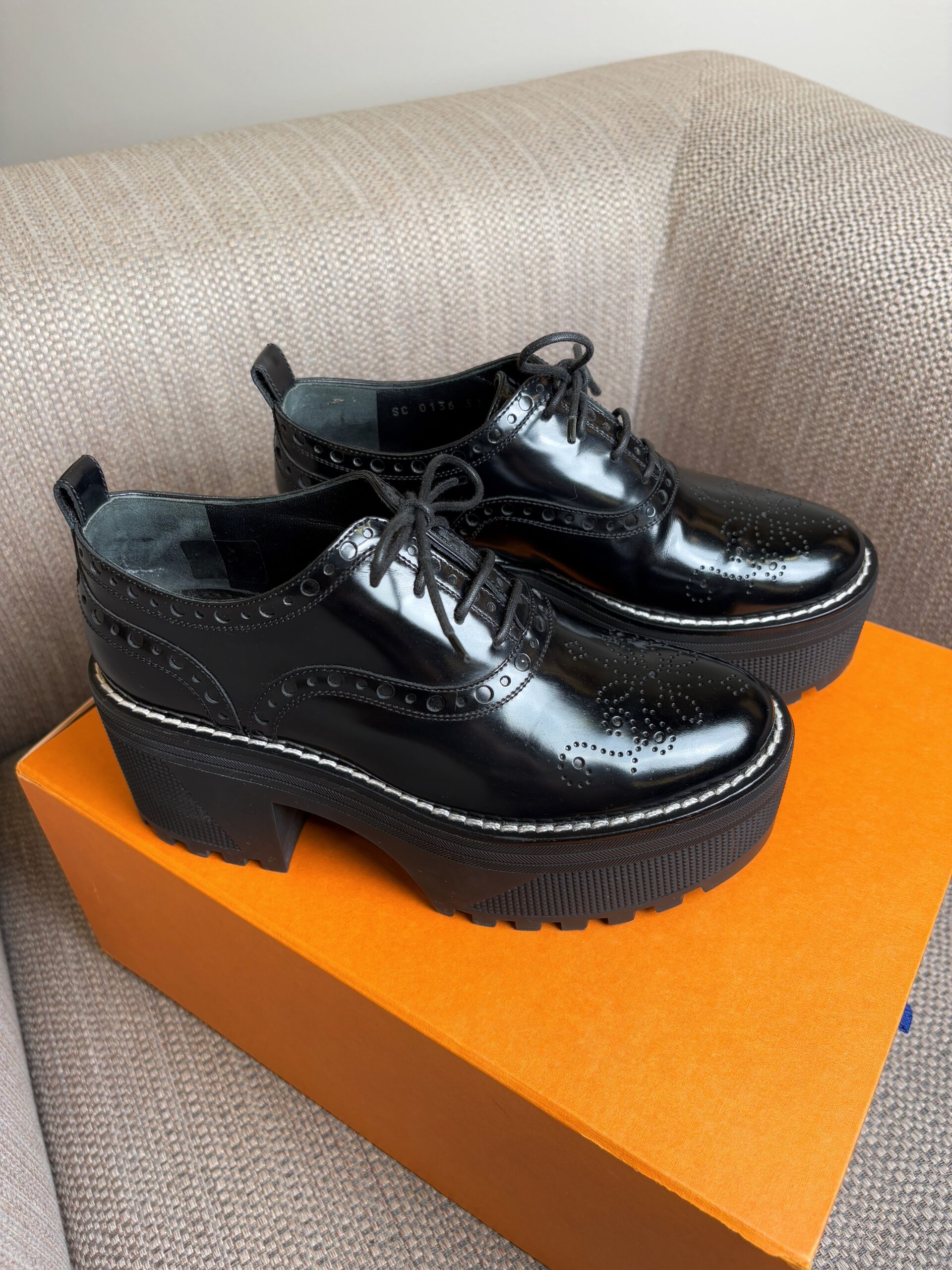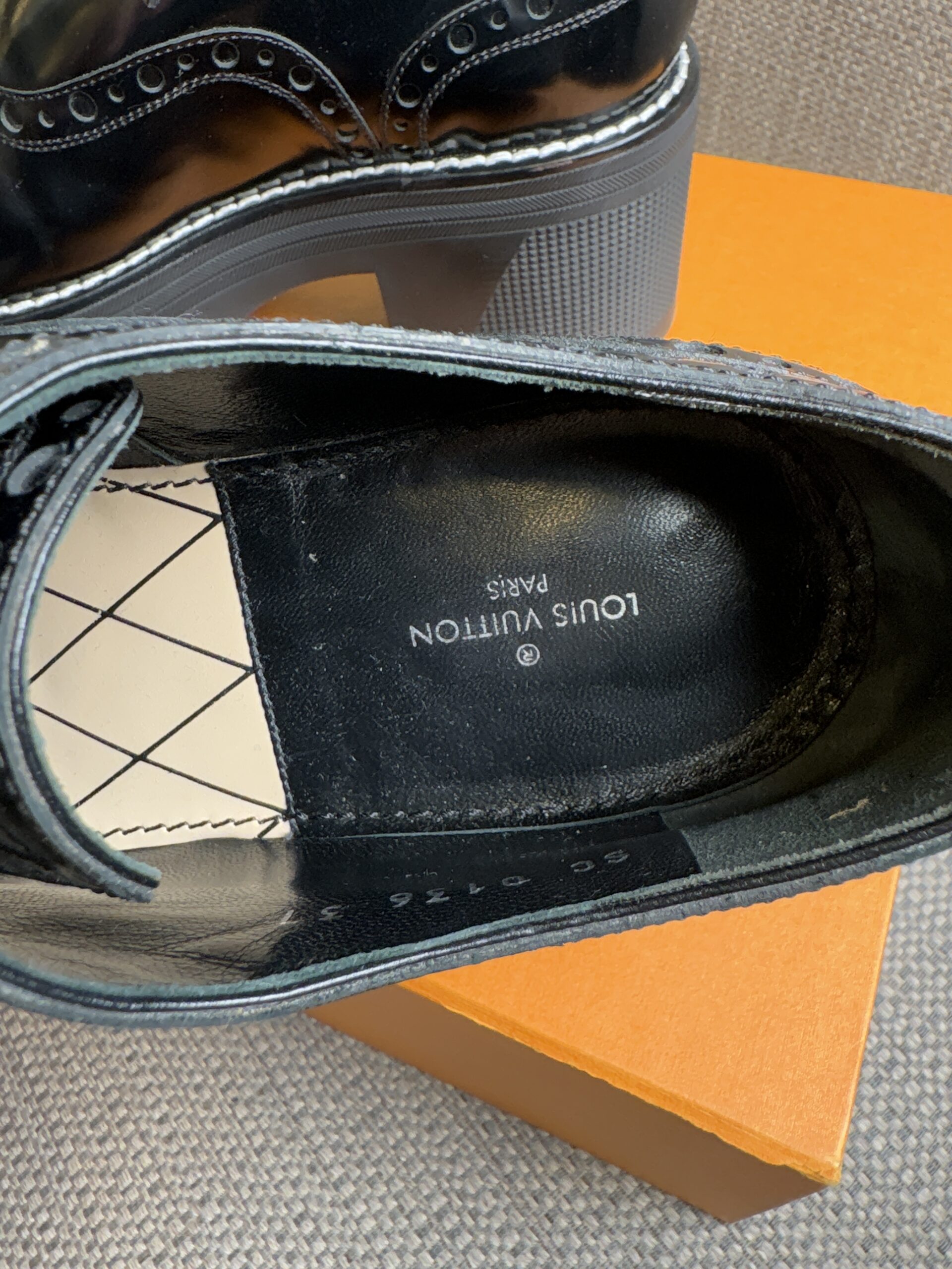 Louis Vuitton Oxfordky ve velikosti 37. Jsou elegantní a luxusní, přesto vyloženě nekřičí na 10 metrů LV boty. Stav 9.9/10 – tedy prakticky nové. Jsou včetně balení.