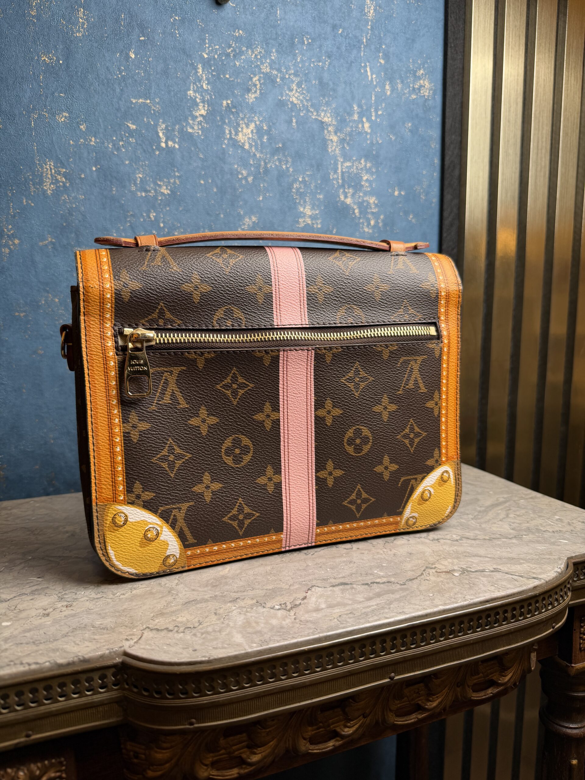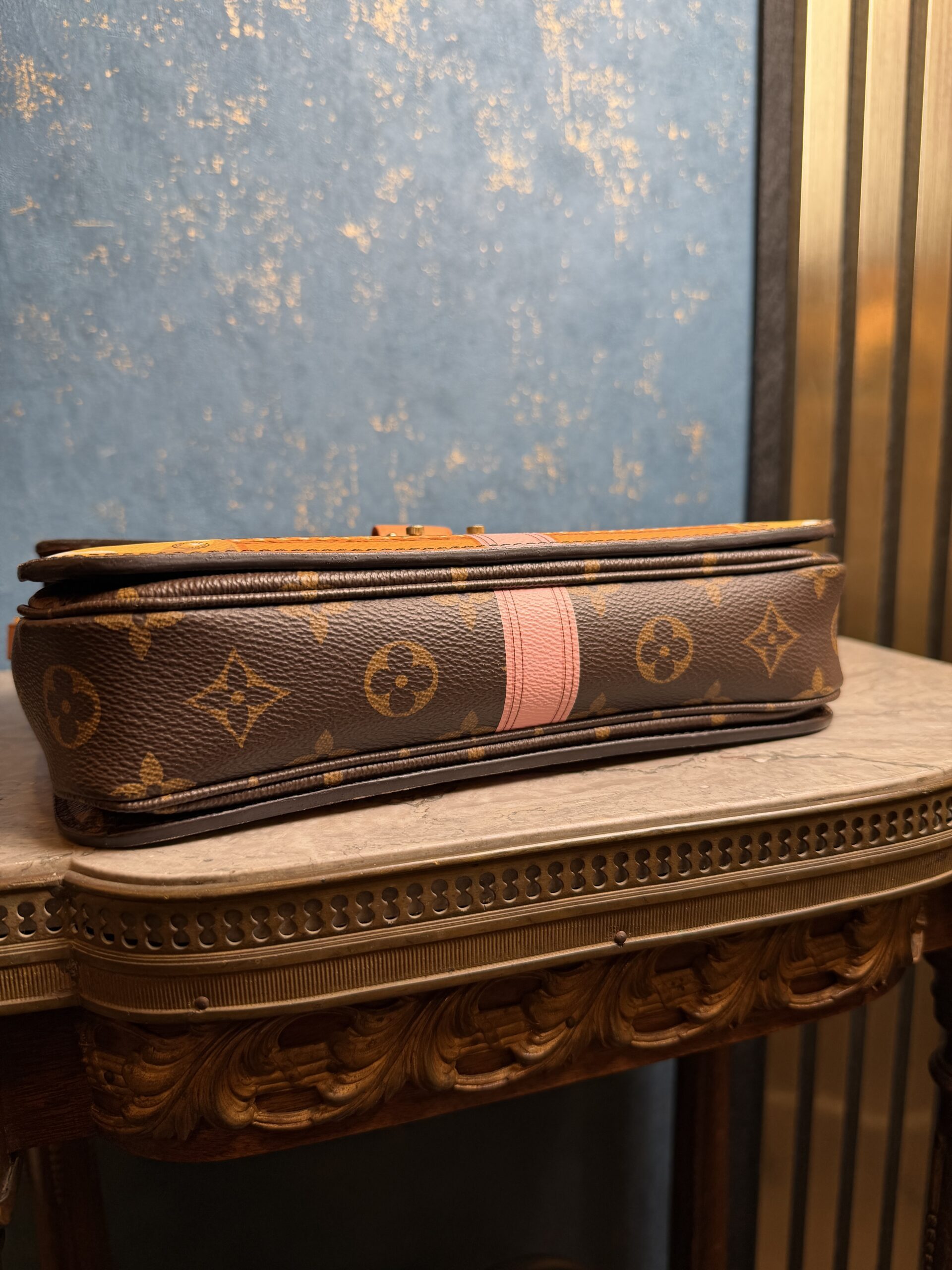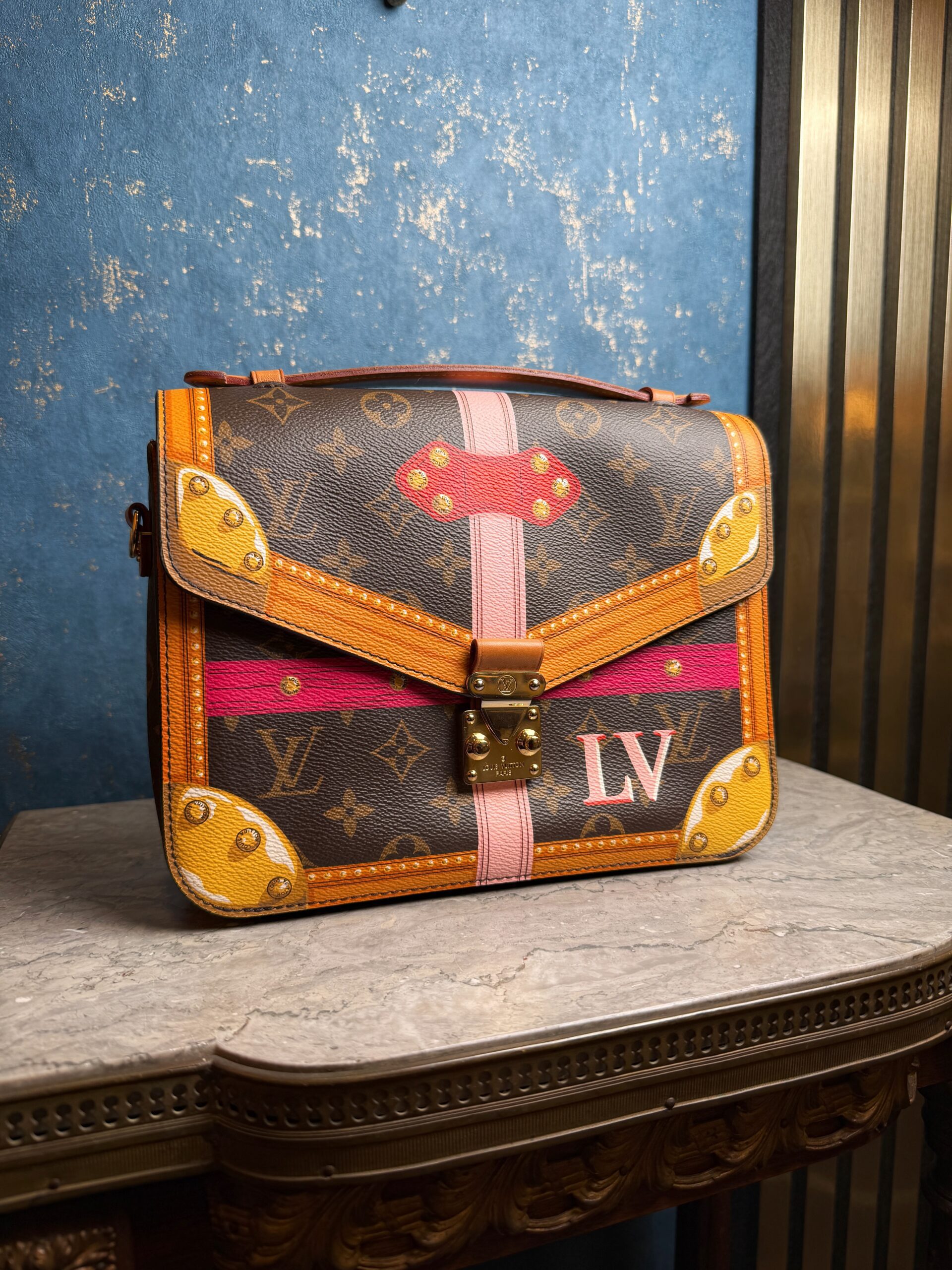 Jedna z nejpopulárnějších kabelek LV v zajímavém provedení Summer Trunks (limitovaná edice). Je včetně popruhu, dustbagu i krabice. Profesionálně vyčištěná zvenku i zevnitř. Stav 9/10. Jedná se o vzácnou kolekci, který vzdává hold klasickým dřevěným kufrům.